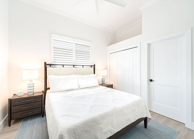 The home’s two-bedroom suites sleep 4 guests comfortably. Each bedroom is equipped with an en-suite bath and a television.
