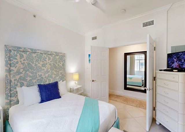 The home’s two-bedroom suites sleep 4 guests comfortably. Each bedroom is equipped with an en-suite bath and a television.