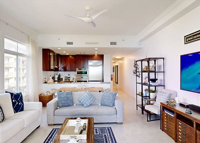 Inside, the interiors feature elevated ceilings, cool tiled floors, and modern fixtures. Central air conditioning, complimentary high-speed wifi, and satellite television programming will keep you cool and connected throughout your stay.
